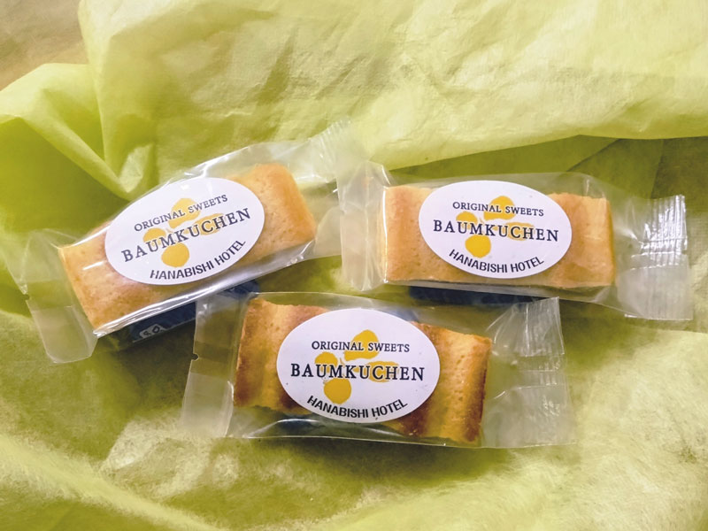 やさしい甘さの花びしホテルオリジナルスイーツ「バウムクーヘン」。